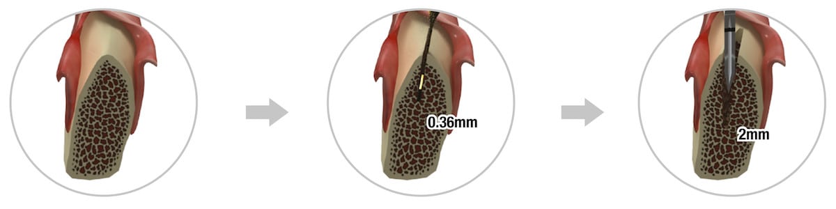 Da der Kern schmal und gleichförmig ist, kann das Implantat während dem Bone Splitting in einem horizontalen Knochenschnitt eingebracht werden, was zu einer besseren Primärstabilität und weniger Belastung für den Knochen führt.